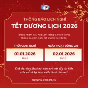 Phòng khám Tiêu hoá Lam Hồng xin trân trọng thông báo đến Quý khách hàng lịch nghỉ Tết Dương lịch như sau: